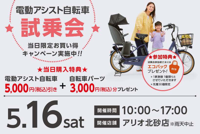アリオ北砂店 電動アシスト自転車試乗会(5月16日)